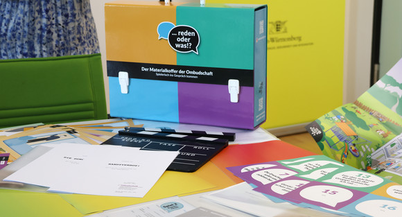 Der neu entwickelte Materialkoffer der Ombudschaft Baden-Württemberg bietet interaktive Möglichkeiten und spielerische Zugänge, um im pädagogischen Alltag mit Kindern und Jugendlichen altersgerecht über ihre Rechte ins Gespräch zu kommen.