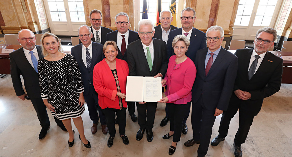 Die Vereinbarung wurde seitens der Landesregierung unterzeichnet von Ministerpräsident Winfried Kretschmann, der Ministerin für Wirtschaft, Arbeit und Wohnungsbau Dr. Nicole Hoffmeister-Kraut, der Ministerin für Kultus, Jugend und Sport Dr. Susanne Eisenmann, der Ministerin für Wissenschaft, Forschung und Kunst Theresia Bauer und dem Minister für Soziales und Integration Manne Lucha. Zudem unterschrieben die Vizepräsidentin des Baden-Württembergischen Industrie- und Handelskammertags Marjoke Breuning, der Präsident der Arbeitgeber Baden-Württemberg Dr. Rainer Dulger, der Präsident des Baden-Württembergischen Handwerkstags Rainer Reichhold, der Vorstand des Landesverbands der Freien Berufe Baden-Württemberg Dr. Torsten Tomppert, der Vorsitzende des Deutschen Gewerkschaftsbundes Baden-Württemberg Martin Kunzmann, der Vorsitzende der Geschäftsführung der Regionaldirektion Baden-Württemberg der Bundesagentur für Arbeit Christian Rauch, der Präsident des Städtetags Baden-Württemberg Dr. Peter Kurz, der Präsident des Landkreistages Baden-Württemberg Joachim Walter und vom Gemeindetag Baden-Württemberg Harald Burkhart.