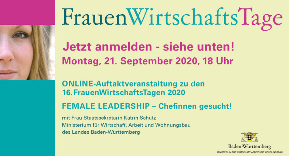 Staatssekretärin Katrin Schütz betonte anlässlich der Online-Auftaktveranstaltung zu den 16. Frauenwirtschaftstagen 2020 die Bedeutung von Frauen in Führungspositionen: „Frauen sind in Führungspositionen oder als Unternehmerinnen deutlich unterrepräsentiert. Dies wollen wir ändern, denn Baden-Württembergs wirtschaftlicher Erfolg hängt gerade auch von den Kompetenzen von Frauen als Fach- und Führungskräfte ab. Mit dem Schwerpunktthema ‚Female Leadership – Chefinnen gesucht‘ wollen wir Frauen zur Übernahme von Führungspositionen wie auch zur Unternehmensnachfolge ermutigen.“ Auch die Auswirkungen der Corona-Krise sollen thematisiert werden. „Frauen stehen in der Bewältigung der Corona-Krise an vorderster Front. Es darf nun keinen Rückfall in traditionelle Rollenbilder geben. Auch deshalb sind die Frauenwirtschaftstage dieses Jahr besonders wichtig.“