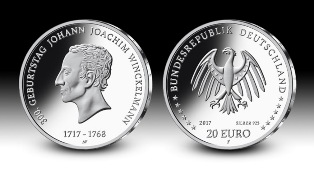 Die Sammlermünze „300. Geburtstag Johann Joachim Winckelmann“ würdigt Johann Joachim Winckelmann (1717 bis 1768), den Begründer der wissenschaftlichen Archäologie und Kunstgeschichte. Er erarbeitete die Prinzipien einer Chronologie der antiken Kunst. Seine Betrachtungen waren richtungsweisend für die Ausbildung der neueren Kunstgeschichte als wissenschaftliche Disziplin. Der Entwurf des Siegermotivs stammt vom Künstler Andre Witting aus Berlin. Das Portrait zeigt Johann Joachim Winckelmann nach dem Vorbild vieler antiker Münzen im Profil. Die Sammlermünze ist aus Sterlingsilber und wird in den Prägequalitäten Stempelglanz und Spiegelglanz hergestellt. Die Münzen in Stempelglanzqualität werden in einer Auflage von vorläufig 800.000 Stück über die Deutsche Bundesbank zum Nennwert (20 Euro) in Umlauf gebracht. Die Ausgabe der Münzen in Spiegelglanz mit einer Auflage von 130.000 Stück erfolgt durch die offizielle Verkaufsstelle für Sammlermünzen zum Verkaufspreis von 34,95 Euro. Die Ausgabe soll ab 12. Oktober 2017 beginnen.