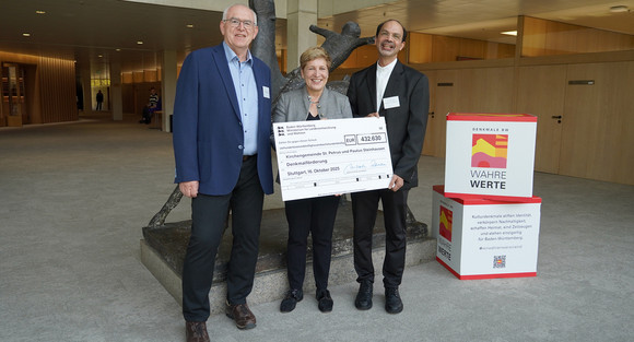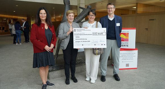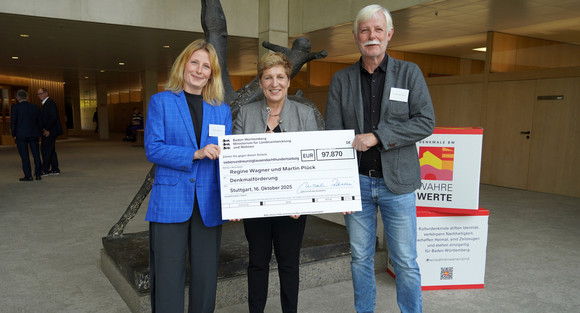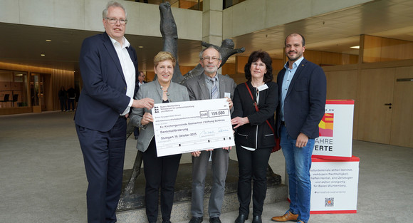 Die Ministerin für Landesentwicklung und Wohnen, Nicole Razavi, überreichte am 16. Oktober 2025 im Stuttgarter Landtag symbolische Schecks an fünf Denkmaleigentümerinnen und -eigentümer aus Baden-Württemberg. Das Land unterstützt sie bei der Sanierung ihrer Kulturdenkmale jeweils mit einer Förderung im Rahmen der zweiten Tranche des Denkmalförderprogramms 2025.