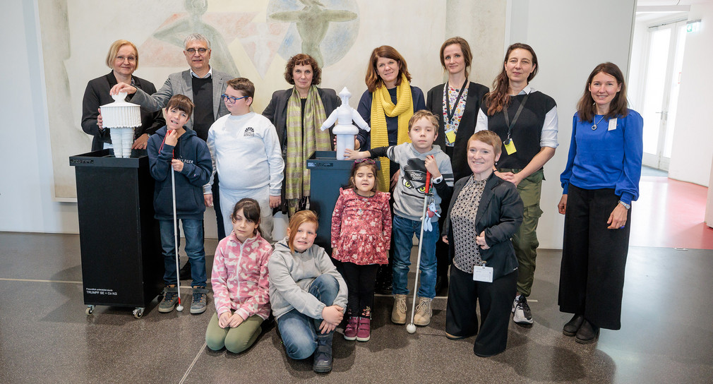 Unter dem Motto „Gelebte Inklusion" wurde das Angebot des Museums bei einem gemeinsamen Rundgang vorgestellt. Staatssekretär Arne Braun und Simone Fischer hatten die Möglichkeit, ein Werk von Otto Freundlich sowie dreidemnsionale Modelle von zwei Figurinen des Triadischen Balletts von Oskar Schlemmer als verkleinerte Tastmodelle zu erleben. In der Hugo Boss-Werkstatt haben Kinder individuelle Figurinen aus Papier und Moosgummi gestaltet.