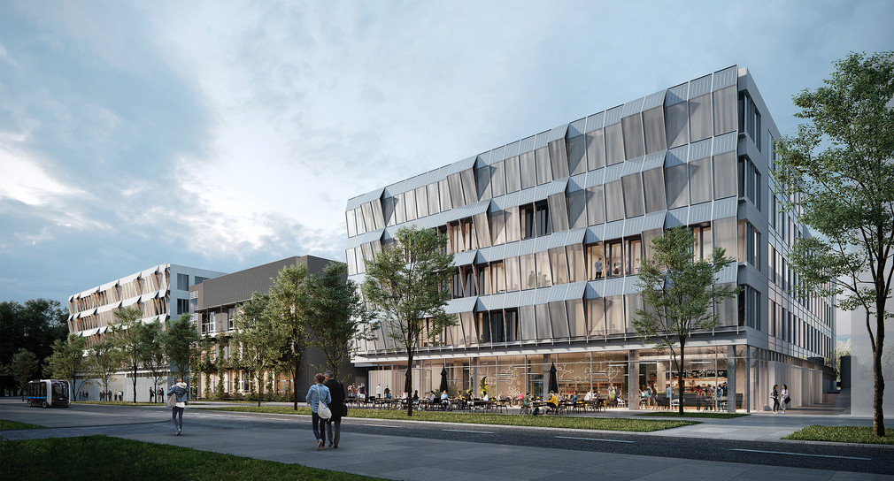 Das Gebäude bekommt eine hochwertig gedämmte Gebäudehülle. Die Hauptfassaden werden mit Photovoltaik ausgestattet. Die vorgesehene PV-Fläche auf dem Dach und an den Fassaden hat rund 1.015 Quadratmeter und eine Gesamtleistung von etwa 191 Kilowattpeak.