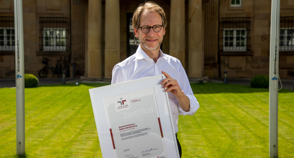 Für seine nachhaltigen Bemühungen um die Vereinbarkeit von Beruf, Familie und Privatleben ist das Staatsministerium erneut mit dem Zertifikat „audit berufundfamilie“ ausgezeichnet worden. Die Würdigung erfolgte im Rahmen einer virtuellen Zertifikatsfeier.