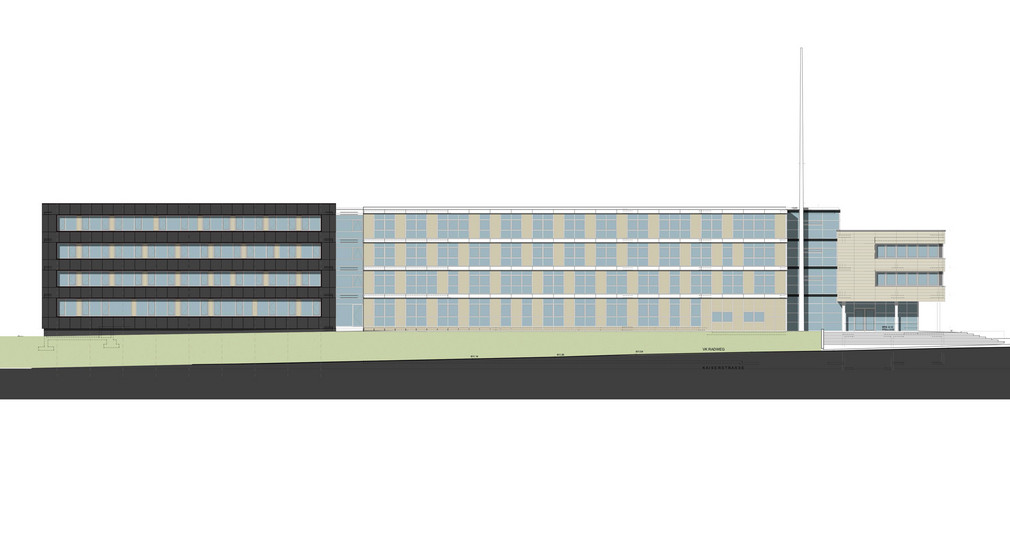 Damit die verschiedenen Organisationseinheiten untergebracht werden können, sollen Anpassungen im Gebäudebestand und ein Erweiterungsbau geschaffen werden. Der geplante viergeschossige Neubau mit einer Fläche von rund 1.000 Quadratmetern wird entlang des bestehenden Hauptgebäudes an der Kaiserstraße errichtet.