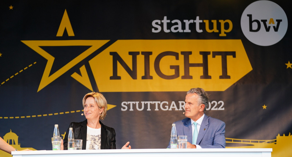 Unter dem Motto „Public meets Start-up culture“ fand am 21. Juli 2022 auf dem Börsenplatz in Stuttgart die Start-up BW Night statt. Besucherinnen und Besucher konnten von 14 bis 2 Uhr bei Live-Musik und Snacks in die Welt der Gründerinnen und Gründer eintauchen und innovative Start-ups kennen lernen. „Mit der Start-up BW Night in Stuttgart bringen wir alle Menschen mit Interesse an einer beruflichen Selbständigkeit, Gründerinnen und Gründer, Start-ups, junge und etablierte Unternehmen sowie Kapitalgeber zusammen“, erklärte Wirtschaftsministerin Dr. Nicole Hoffmeister-Kraut. „Sie bietet hochwertigen Input aus der Praxis, Beratung, Networking, Austausch, Diskussionen und Matchmaking.“