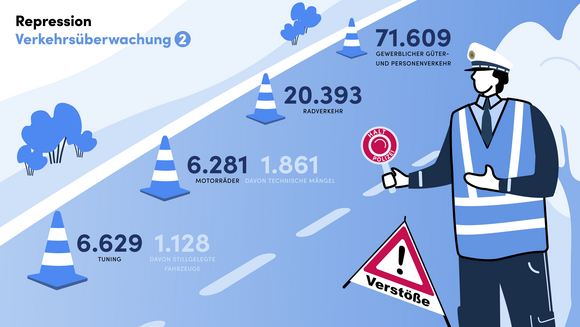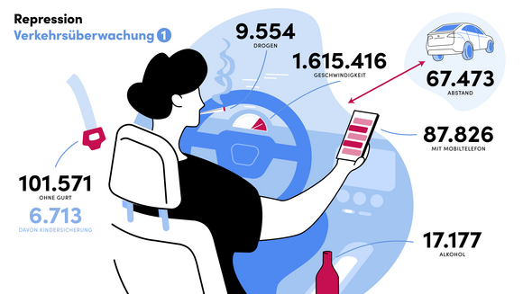 Zur Bekämpfung der Hauptursachen und Risikofaktoren für schwere Verkehrsunfälle setzt die Polizei Baden-Württemberg auf eine zielgerichtete Verkehrsüberwachung. Dabei hat die Polizei im vergangenen Jahr 1.615.416 Geschwindigkeitsverstöße erfasst. 26.731 Menschen fuhren unter Alkohol-, Drogen- oder Medikamenteneinfluss und gelangten hierfür zur Anzeige. Zudem stellte die Polizei 87.826 Handyverstöße, 101.571 Verstöße gegen die Gurt- und Kindersicherungspflicht und 67.473 Abstandsverstöße fest. Im Zusammenhang mit Posing und illegalem Tuning wurden im vergangenen Jahr 6.629 Verstöße angezeigt. Bei 3.264 Schwerpunktkontrollen rund um den Radverkehr hat die Polizei 20.393 Verkehrsverstöße festgestellt; im Bereich der Motorradkontrollen waren es bei 1.797 Kontrollen 6.281 Verstöße. „Verkehrssicherheitsarbeit ist Kernaufgabe der Polizei. Sie ist kein Selbstzweck und wir möchten damit auch keine Kasse machen. Es geht darum, Menschenleben zu retten!“, betonte Innenminister Thomas Strobl.