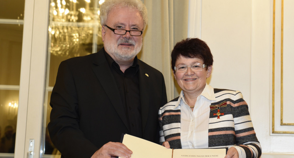 Staatsminister Klaus-Peter Murawski hat Margot Kuon das Verdienstkreuz am Bande des Verdienstordens der Bundesrepublik Deutschland überreicht und ihr herausragendes Engagement und ihrer aufopfernde Hilfe für neurologisch erkrankte Kinder und deren Familien gewürdigt.