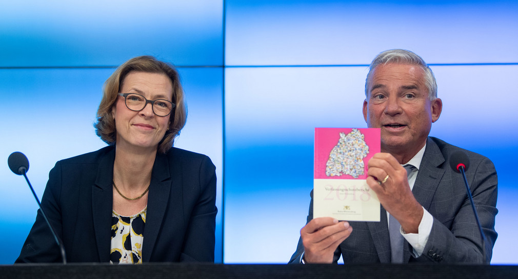 „Der Verfassungsschutz steht vor großen Herausforderungen. Die Anforderungen haben in den vergangenen Jahren kontinuierlich zugenommen und es ist absehbar, dass sie noch weiter steigen werden. Unserer Demokratie drohen Gefahren aus allen extremistischen Bereichen – nicht nur aus dem weiterhin bedrohlichen Bereich des islamistischen Extremismus und Terrorismus, sondern auch von Rechts- und Linksextremisten, Reichsbürgern und Selbstverwaltern, extremistischen Ausländern oder der Scientology-Organisation“, fasste der Stellvertretende Ministerpräsident und Innenminister Thomas Strobl zusammen. Gemeinsam mit der Präsidentin des Landesamts für Verfassungsschutz, Beate Bube, stellte er den Verfassungsschutzbericht 2018 vor.