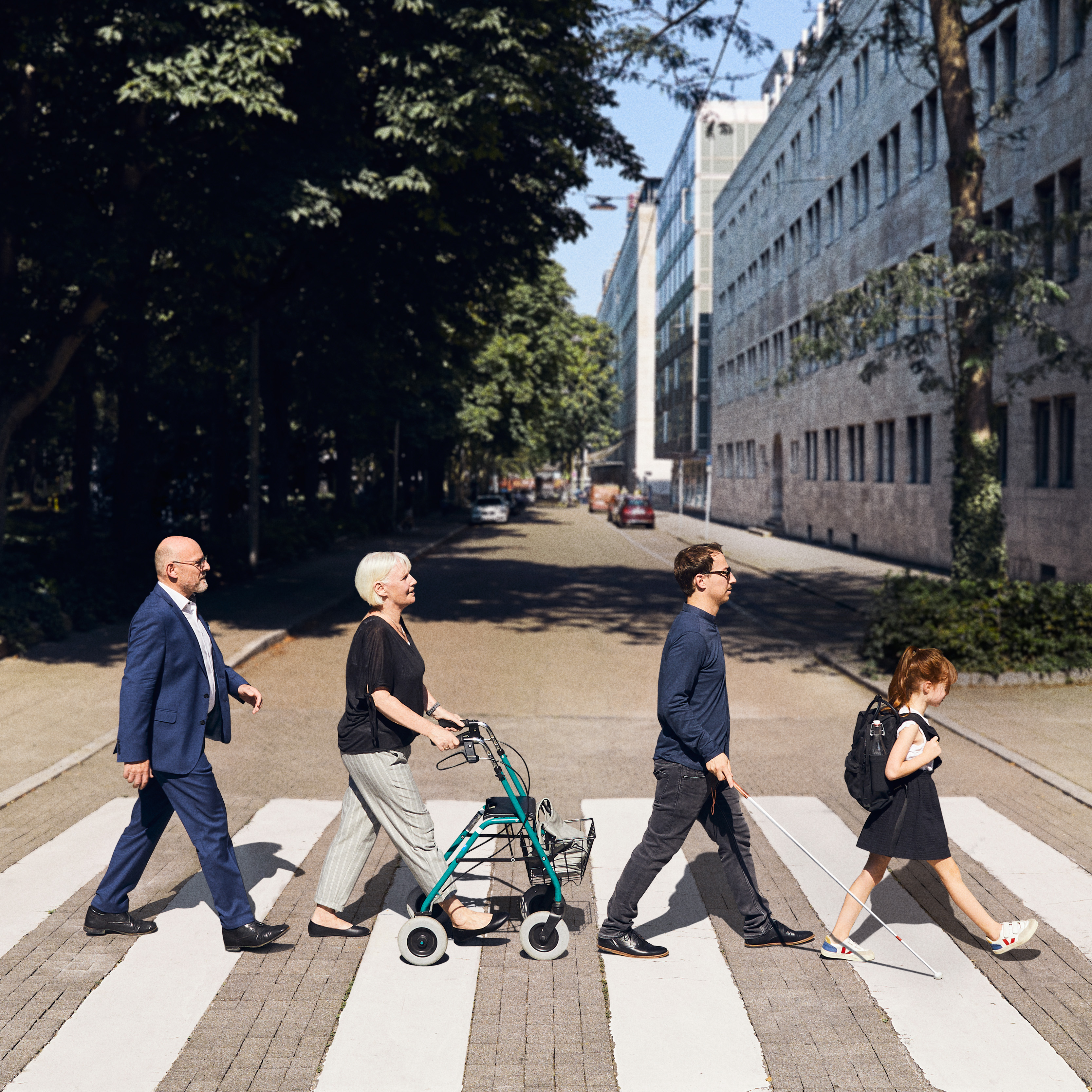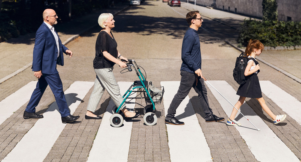 Ein nachgestelltes Bild des weltberühmten Albumcovers „Abbey Road“ rückt den sicheren Fußverkehr im Allgemeinen und das Aktionsprogramm „1.000 Zebrastreifen für Baden-Württemberg“ in den Mittelpunkt. Das Land hat das Ziel, den Fußverkehr sicherer zu machen und die Zahl der Unfälle zu senken.