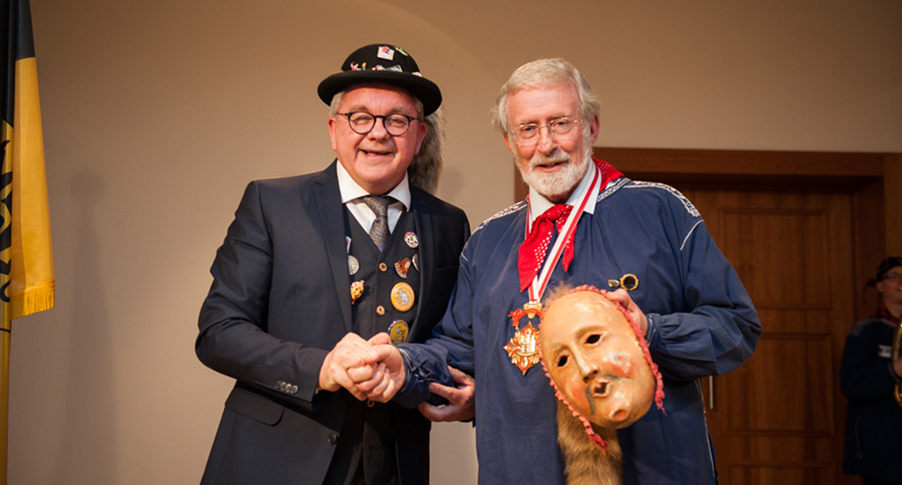 Europaminister Guido Wolf hat Prof. Dr. Werner Mezger als „Gesicht Europas“ gewürdigt. Beim närrischen Empfang in der Landesvertretung mit der Vereinigung Schwäbisch-Alemannischer Narrenzünfte (VSAN) überreichte Wolf dem Rottweiler sowie langjährigen SWR-Moderator und Kommentator eine Holzlarve des Fridinger Künstlers Willi Bucher. Mezger habe als Professor für Kulturanthropologie und Europäische Ethnologie sowie als Direktor des Instituts für Volkskunde der Deutschen die Fastnacht als europäisches Kulturgut wissenschaftlich erforscht.