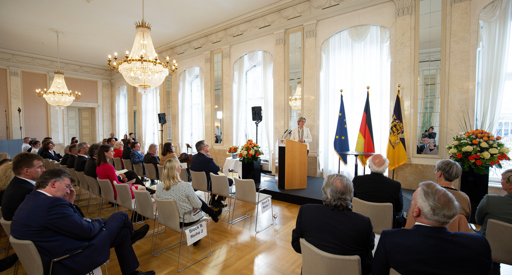 „Selten war so viel innovatives Unternehmertum gefordert, um neue Geschäftsmodelle zu entwickeln und neuartige Märkte zu erschließen. Für mehr Resilienz, eine größere Unabhängigkeit bei der Energieversorgung und eine gelingende Transformation in Richtung Klimaneutralität braucht es gerade jetzt ein Feuerwerk an wirtschaftlich-technischen Innovationen“, betonte Dr. Nicole Hoffmeister-Kraut in ihrer Festrede. Denn zeitgleich mit den multiplen Krisen der Gegenwart befinde sich die Wirtschaft auch inmitten eines gewaltigen Transformationsprozesses. „Nicht zuletzt Ihrem Willen zur Innovation und Ihrem sozialen Verantwortungsbewusstsein ist es zu verdanken, dass wir bislang vergleichsweise gut durch die Krisen unserer Zeit gekommen sind“, so die Ministerin.