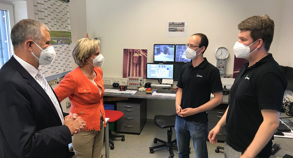 Auftakt im Programm der Ministerin war ein Einblick in aktuelle Projekte der HyImpulse Technologies GmbH mit Firmensitz in Neuenstadt am Kocher. Die Firma ist eines von nur drei Start-ups in ganz Deutschland, die im weltweiten New Space-Rennen für sogenannte Microlauncher ganz vorne mit dabei ist. Ziel ist es, kleine und leichte Satelliten kostengünstiger und schneller als bisher in die Erdumlaufbahn zu befördern. „Die Raumfahrtbranche steht auch mit Blick auf die Corona-Krise vor großen Herausforderungen. Ein wirtschaftlicher Betrieb von Satellitenstrukturen ist nur möglich, wenn es uns gelingt, Satelliten in größeren Mengen und zu niedrigeren Preisen zu produzieren. Die HyImpulse Technologies GmbH leistet dabei einen wichtigen Beitrag und ist als kreatives Start-up ein hervorragendes Beispiel für ‘Innovationen made in BW‘ “, sagte Hoffmeister-Kraut. Auf dem Gelände des Deutschen Zentrums für Luft- und Raumfahrt in Lampoldshausen nahm die Ministerin an einem Triebwerkstest des Launchers teil und tauschte sich mit den Unternehmensvertretern über die Technologie aus.