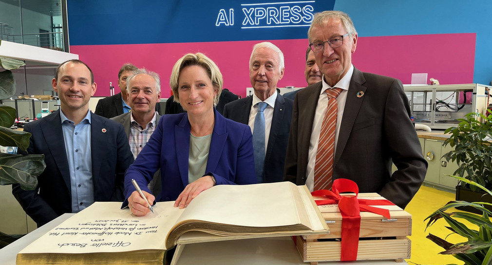 Als dritte Station präsentierte Landrat Bernhard der Wirtschaftsministerin mit AI xpress das KI-Start-up- und Innovationszentrum der Region, das der Landkreis Böblingen mit einer Anschubfinanzierung in Höhe von 1,2 Millionen Euro möglich gemacht hat. Es wird als einer von 18 Start-up BW Acceleratoren durch das Wirtschaftsministerium mit rund 240.000 Euro gefördert. „Künstliche Intelligenz ist das Schlüsselthema für die Wirtschaft des 21. Jahrhunderts. Es ist beeindruckend zu sehen, wie der Landkreis Böblingen hier eine Fläche mit Leerstand reaktiviert und daraus ein Innovationszentrum für Zukunftstechnologien gemacht hat. An diesem Ort finden Gründerinnen und Gründer Räume mit Werkzeugen zum Ausprobieren und zum Bau von Prototypen, Plätze zum Arbeiten, vor allem aber auch die Möglichkeit, sich mit anderen Gründerinnen und Gründern sowie auch mit erfahrenen Coaches auszutauschen“, betonte die Wirtschaftsministerin. Das Ziel von AI xpress ist, Unternehmensgründungen aus der Region zu fördern, Technikbegeisterung bei jungen Menschen zu wecken, den Technologietransfer zu unterstützen und die Innovationskraft von Unternehmen, insbesondere des Mittelstandes, zu stärken.