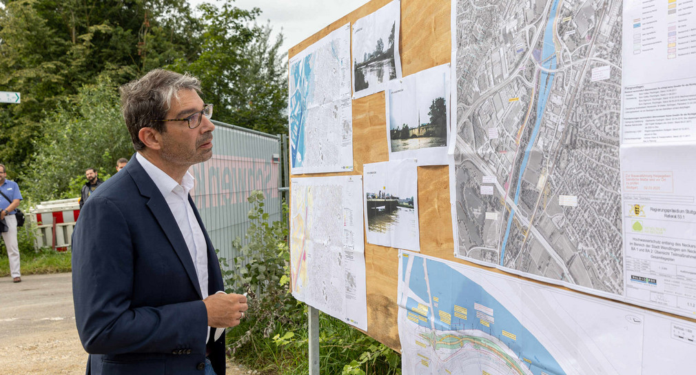 Am zweiten Tag seiner Sommertour 2021 hat Staatssekretär Baumann eine Hochwasserschutzmaßnahme in Wendlingen am Neckar und die Firma Dürr Systems AG in Bietigheim-Bissingen besucht.